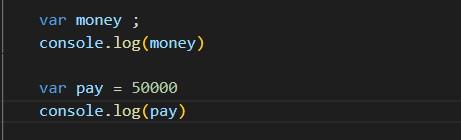 비교를 위해 var 형태로 money 와 pay 라는 변수를 생성하였다.