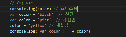 var형식은 처음 선언과 이후 재선언 등을 구분하기 어렵다.