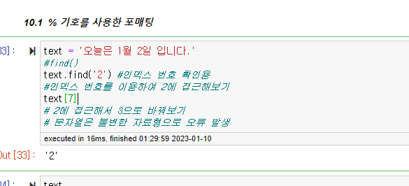 text 변수의 7번째 자리에 있는 문자열을 변경할 때, 불변한 자료형으로 오류발생